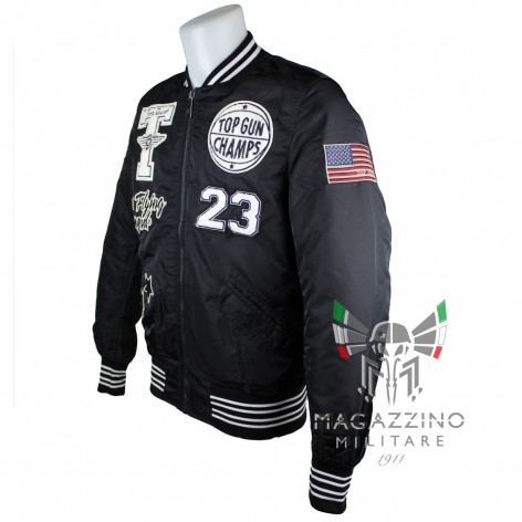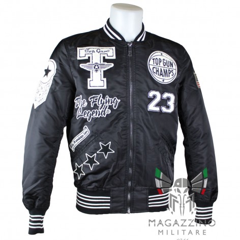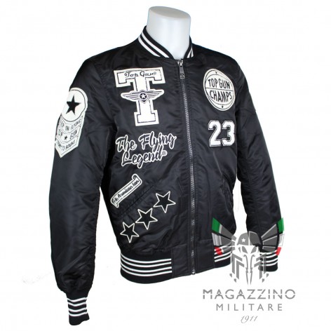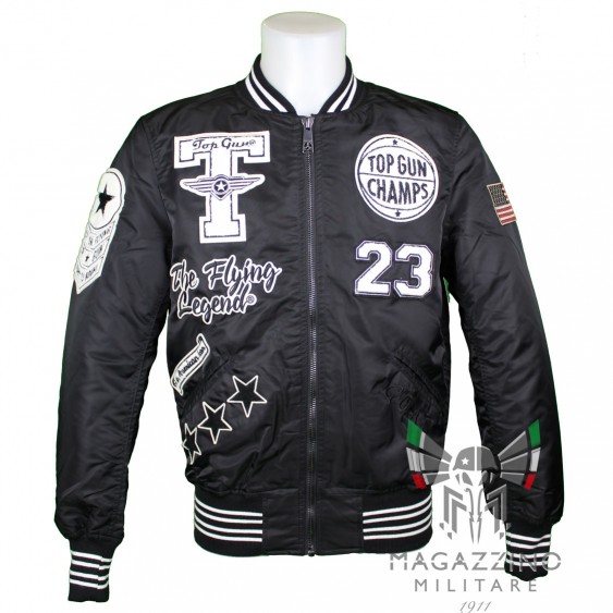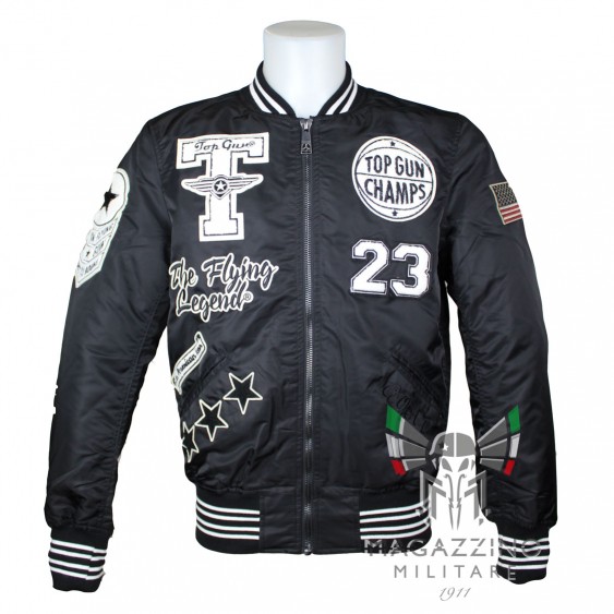TOP GUN® Men's College Bomber Jacket Black with Embroidered Patches