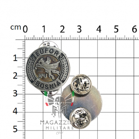 The metal pin badge for the EUFOR BOSNIA IPU Mission is a badge of prestige and recognition for those who participated in this important peacekeeping operation. Crafted with high-quality metal and carefully finished, this pin represents the commitment and contribution of the personnel to the stabilization of Bosnia. The detailed design and sturdy pin closure ensure a secure attachment to jackets, uniforms, or caps. Wear it proudly to commemorate your service and role in the EUFOR BOSNIA IPU Mission.