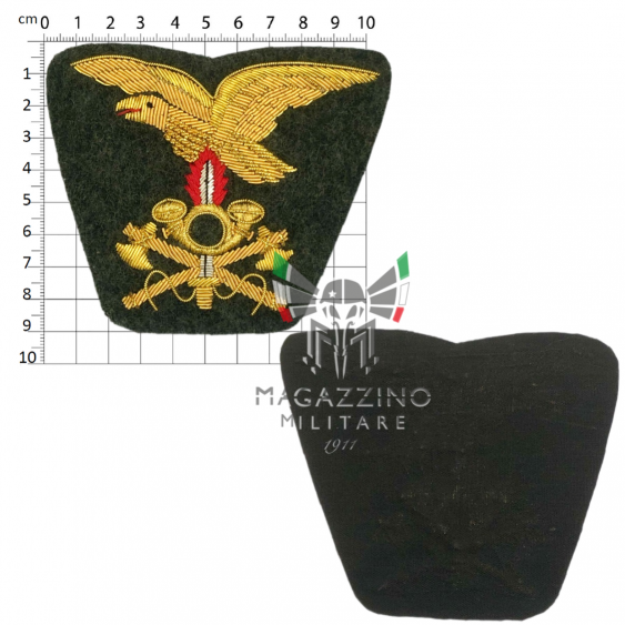 The hat insignia for Alpine Officers with the Engineers Demolitions eagle, embroidered in gold on cloth, is a high-quality badge. Perfect for completing the uniform, it represents the pride and belonging to the Alpine troops.