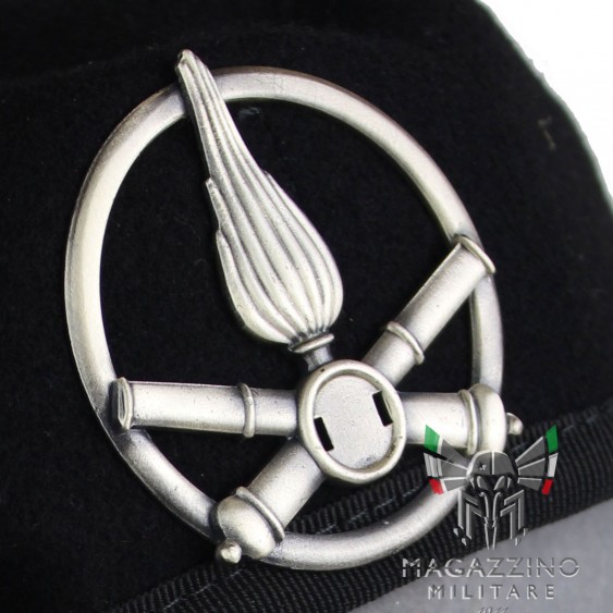 Metal military badge, depicting the distinctive symbol of the Heavy Field Artillery (code F22), intended for application on military berets. An authentic accessory for military personnel, veterans, collectors of military items, and enthusiasts of Italian army history.
