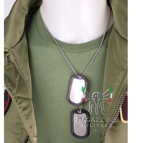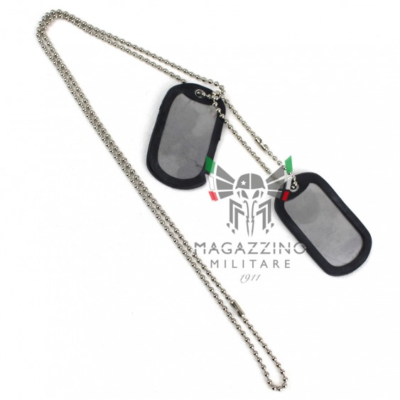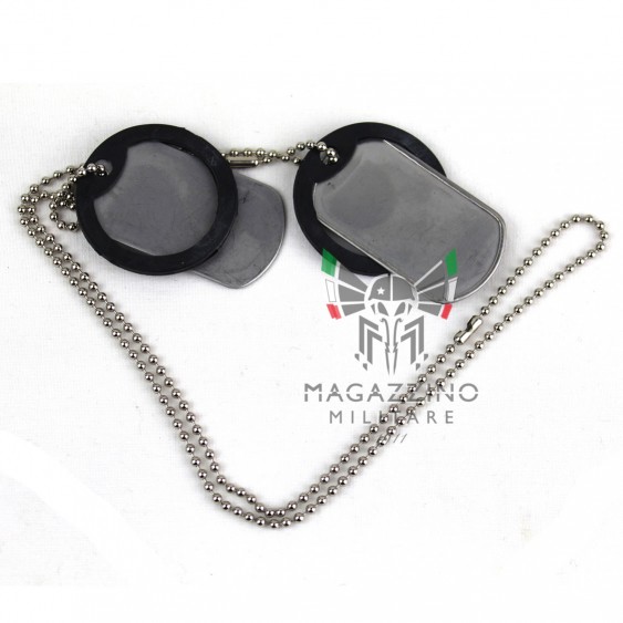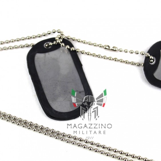 Set of military Dog Tags (US ARMY model), made of matte steel, including stainless steel chains and rubber silencers.