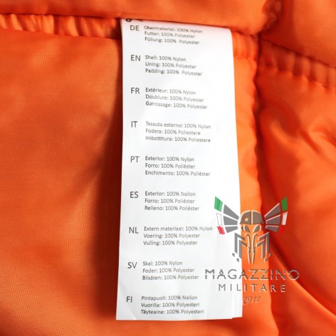 Fodera Reversibile Arancione: La caratteristica fodera interna di emergenza, di un vivido colore arancione, permette di indossare la giacca al contrario per essere facilmente individuabili in situazioni di soccorso.