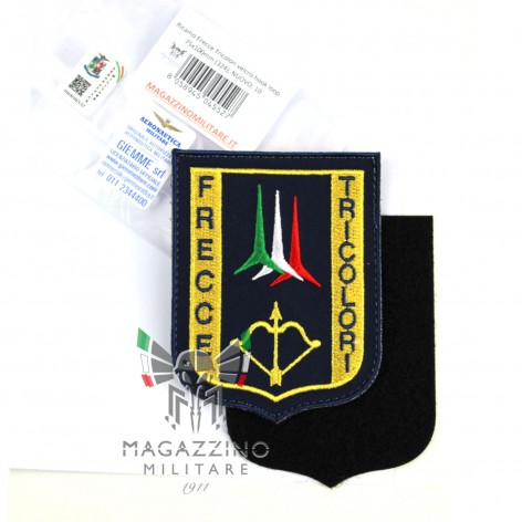 Patch ricamata di alta qualità dedicata alle Frecce Tricolori, con velcro posteriore per l'applicazione su giacche, zaini, uniformi o softshell.
