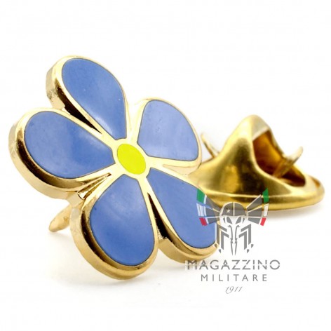 Spilla ufficiale "Myosotis" (24mm) adottata come fiore all'occhiello per i Caduti per la Patria. Simbolo di ricordo eterno, fedeltà e amore per la Nazione.